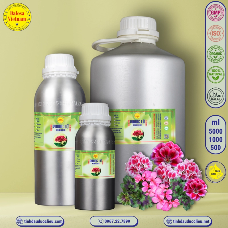 Công ty TNHH Tinh Dầu Thảo Dược Dalosa Việt Nam là đơn vị cung cấp Tinh Dầu Phong Lữ – Geranium Essential Oil hàng đầu tại Việt Nam. Chúng tôi nhập khẩu tinh dầu Phong Lữ từ Ấn Độ, Indonesia và Pháp, cam kết cung cấp sản phẩm chất lượng cao với nguồn gốc rõ ràng, đã được kiểm định tại các tổ chức uy tín như Quatest 3.